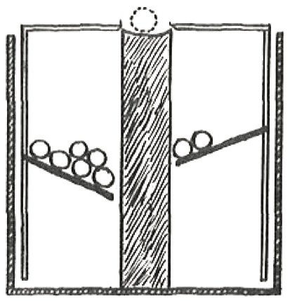 With one of these boxes before you, loosen the cigarette platform on one of the sides and move it about half an inch higher. That is the secret. You will easily see just how high you can lift the inside before a cigarette will roll onto the upright, but a cigarette from this moved up side will have to roll on first.