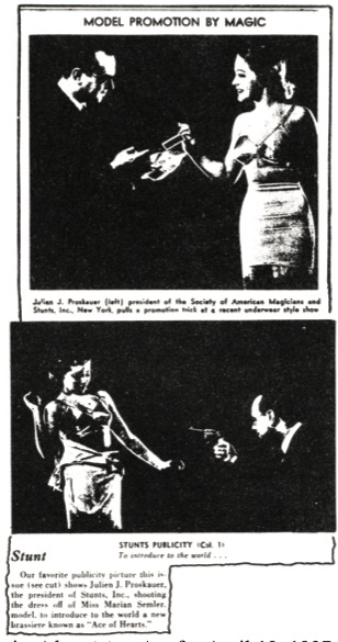 The top picture was in Advertising Age for April 19, 1937. The bottom picture was in Tide for May 1, 1937. All of which reminds one of the A.M. Wilson, M.D. quotation “MAGIC IS AN ART”. The S.A.M. president is to be wildly cheered and salaamed for his originality in discovering a new field for magic publicity.