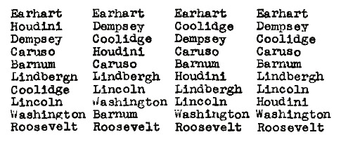 positions on each successive list. Also note that Roosevelt (the second
