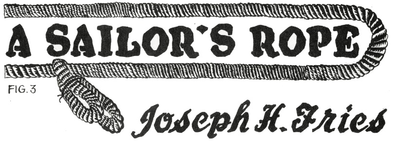 The secret lies in the use of an accessory piece of rope which is made in this manner. Cut a smaller piece of rope about 10 inches long. Unite the ends so that a small ring of rope is made from this. Union can be made by winding a small piece of adhesive tape at the joint, or better, spirally tying a fine piece of thread (about four turns) around the over-lapping ends and snipping away the excess portions (see Fig. 1). With the finest available white thread, make a single tie around this accessory piece of rope after it has been folded in little short of half, and in such manner that the joint portion is at the longer end (see Fig. 2). The single length of rope is looped through the gimmick portion as in Fig. 3. The rope is now prepared. A scissor over-lying the gimmick portion of the rope will hide this effectively.