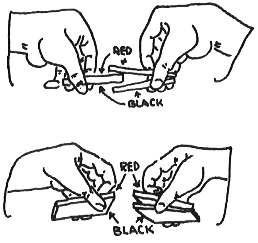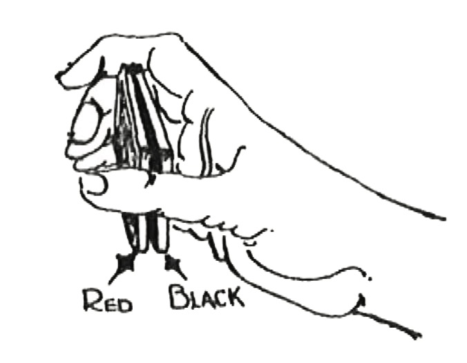 You will have to master a false shuffle. I shall give you two and you may take your choice, or you may use both. The shuffles are designed only to keep separate the red and black cards.