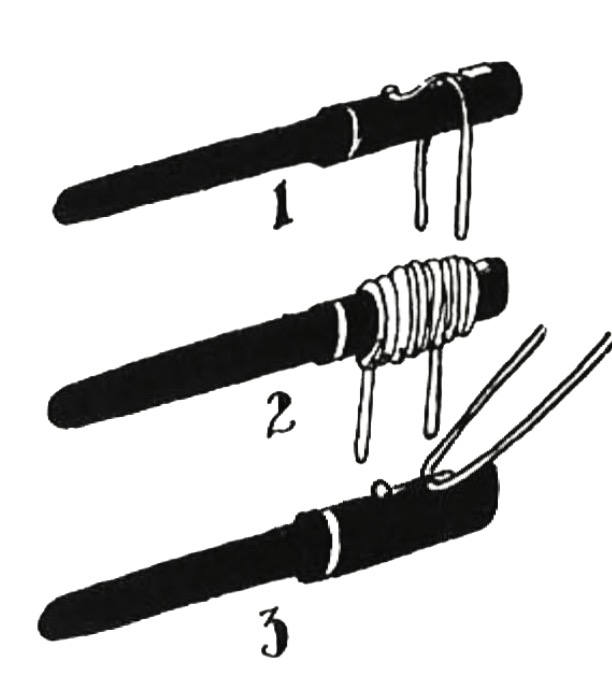 Borrow a fountain pen and procure a piece of string about two feet long. Double the string by bringing the ends together, and slip the loop over the pen and slide it under the clip as shown in the figure. Ask someone to hold the pen horizontally, one hand at each end, and twist the pen toward himself so that it winds the string about it. Hold the two ends of the string to guide it as it winds. The end marked A in the drawing should be a few inches shorter than end B.