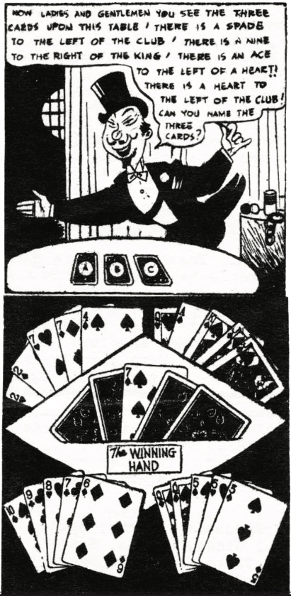 Aside thanks go to Ellis Stanyon for his advertisement reading “In how Jinx, Editor Annemann gives list of the Forty Best Books for Students. FIRST on this list is the Fifteen Volumes of Stanyon’s Monthly Magic”. That takes us back to issue Nยฐ8 – 40 months ago. It still stands.