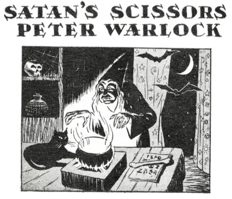 Taking a small pair of scissors from a fancy case, he extolls their marvellous properties. The spectator is asked whether his chosen card is a red or black one. The reply is “Red”. “Thank you,” says the performer, “I will place the scissors in the glass containing the red and white papers. Had you chosen a black card I would have placed the scissors in the other glass”. Suiting the action to these words, the scissors are dropped into the glass and a small silk thrown over the latter. Several seconds elapse and then the performer removes the silk from the tumbler. Taking the packet of papers from the glass, the performer asks the spectator, “Which card did you take ?” He replies “The nine of diamonds”. Then the performer unfolds the papers to find that nine large diamond pips have been cut from the sheet of white tissue forming a replica of the selected card.